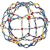 De kleurrijke Hoberman® Original Mini Sphere™ komt uit de doos en ziet eruit als een futuristisch kerstboomornament. Het is een kruising tussen een bal en een ster en heeft een diameter van 5,5 inch. Maar pak het op bij een van de tientallen plastic punten en dit verbazingwekkende kleine staaltje techniek, of imagineering, breidt zich netjes uit tot een roosterachtige bol met een diameter van 12 inch. De uitvinder noemt het een trapeziumvormige icosatetraëder; je zou het ook een Bucky Ball kunnen noemen, maar hoe dan ook, het is een fascinerende oefening in complexe eenvoud. De structuur is stijf genoeg om te rollen en te gooien, maar als hij op de juiste manier wordt aangeraakt, zal hij plotseling weer instorten en in zichzelf krullen als een defensieve egel. Een bijgevoegd pamflet beschrijft verschillende trucs die je kunt doen - als je bereid bent om te oefenen. En het is zo esthetisch dat mama of papa het misschien als bureauornament kan gebruiken.