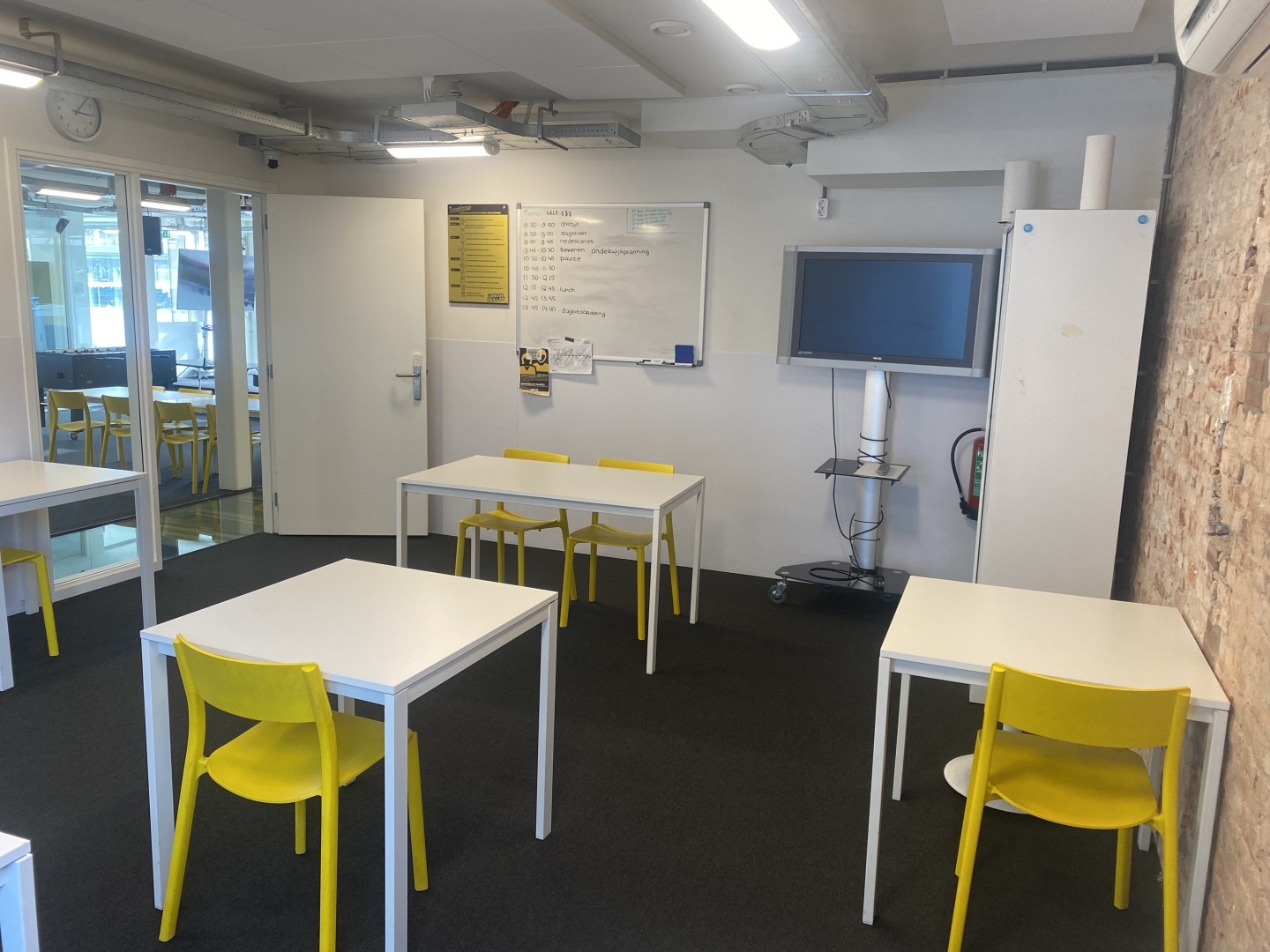 Klaslokaal 2 is een praktische en lichte ruimte, ideaal voor trainingen, lessen of kleine bijeenkomsten.