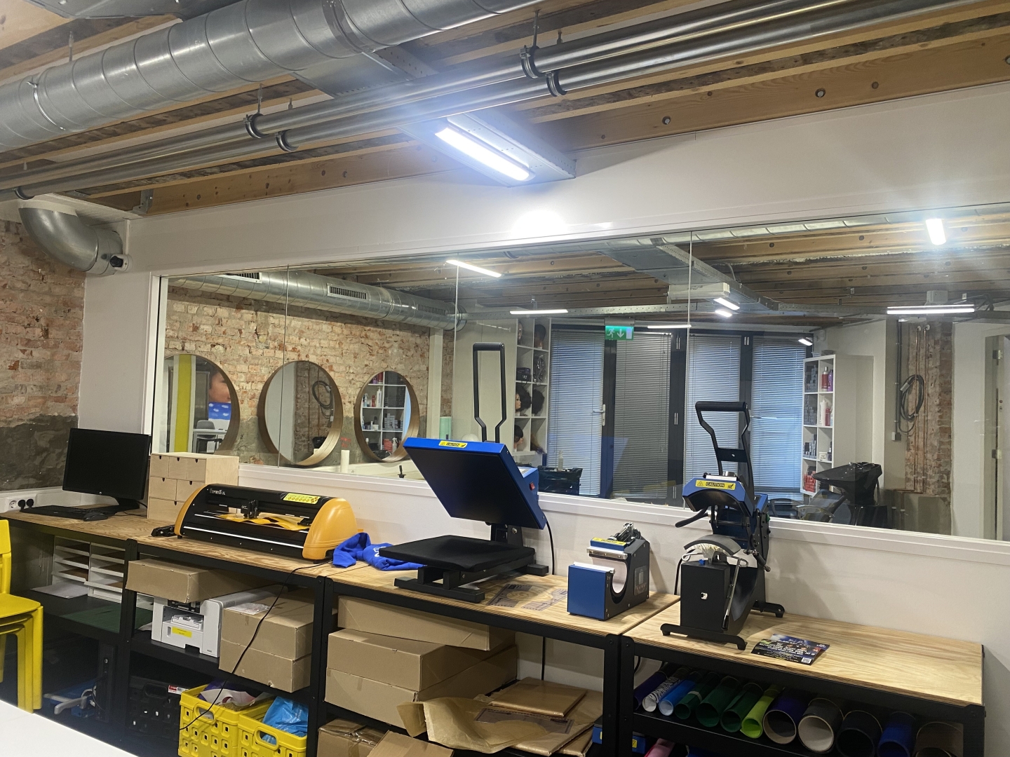Lokaal 4 is een veelzijdige drukwerkplaats die perfect is voor vergaderingen, interactieve workshops en creatieve sessies. De ruimte combineert veel werkplekken met professionele drukfaciliteiten, waardoor ideeën direct kunnen worden uitgewerkt tot tastbare producten.