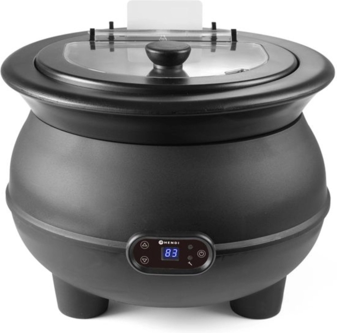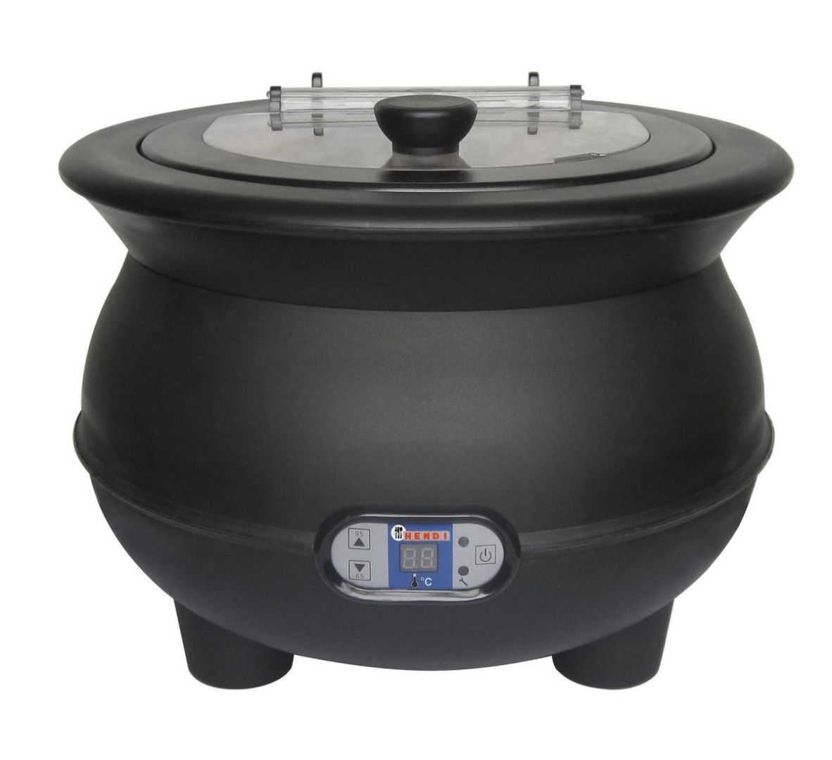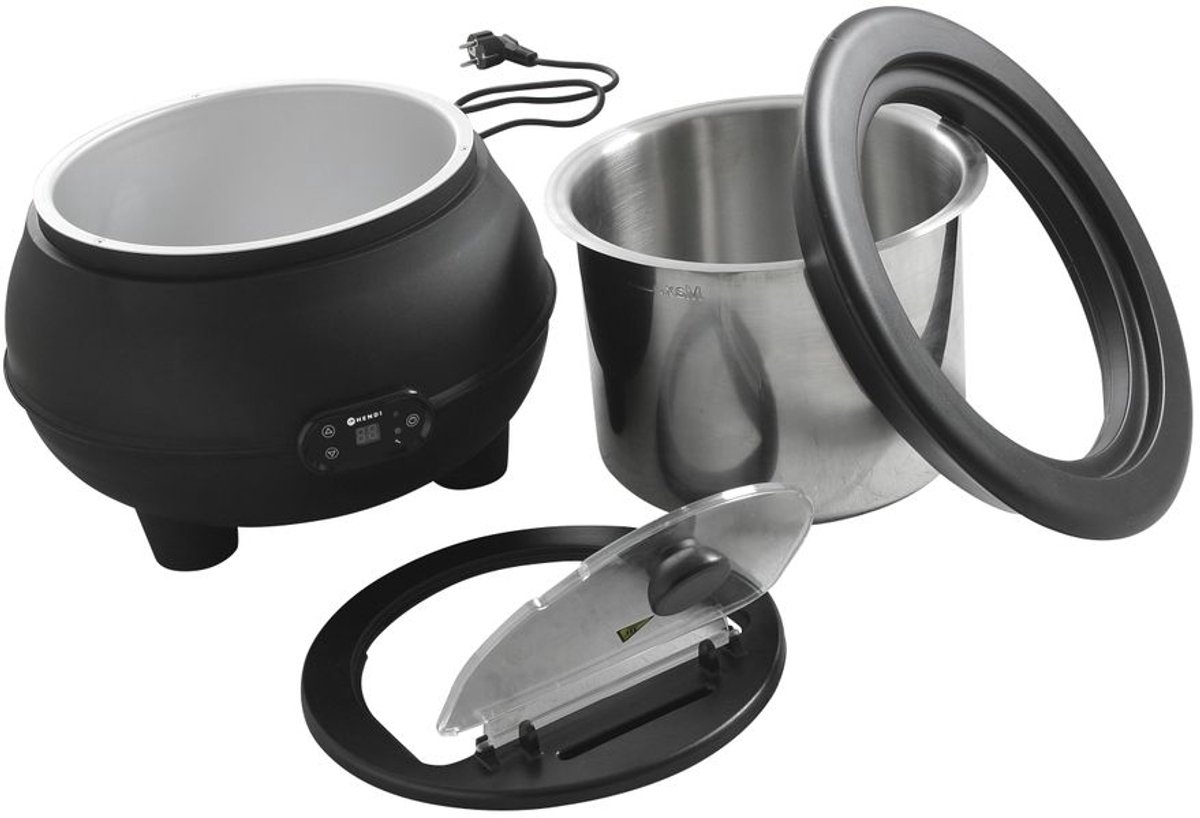 Verwijderbaar deksel van stevig transparant polycarbonaat. Deksel voorzien van geïsoleerde handgreep en lepeluitsparing. Oververhittingbescherming - met alarm bij te lage waterstand.